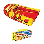 AIRHEAD EZ WAKE TRAINER is a revolutionary inflatable / bodyboard hybrid. EZ WAKE TRAINER is engineered for stability while towing (10 mph maximum), so your child will feel very secure. EZ WAKE TRAINER is the ultimate confidence builder, taking the tears, fear and frustration out of teaching new young boarders and replacing it with safety and fun! Your child will enjoy immediate success on EZ WAKE TRAINER. No fighting with diving wakeboards, boat wakes or ropes! Children board the stable EZ WAKE TRAINER right from the swim step or stern of your boat, no swimming required. While your children have the time of their lives on EZ WAKE TRAINER, they’ll actually be learning to be comfortable with the speed and sensation of watersports. This awesome trainer teaches basic wakeboarding, kneeboarding, wakesurfing and wakeskating fundamentals including proper stance, handle position, balance and weight transfer for turning. They’ll be doing tricks in no time! The EZ WAKE TRAINER body board is easily removable for more advanced body boarding behind the boat, or take it to the beach and ride the waves! Includes 60 Foot Boat Tow Rope from Airhead!