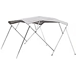 This 4-bow bimini top offers comfort while you are boating as they protect your boat from direct sunlight and harsh conditions such as hail and rain. Typically these tops will center on the mounting points and provide shade half the distance in front and half the distance in back of that point. Buy now and enjoy your boating experiences. FEATURES: 4-bow top; For boats with a beam width of 91-96 inches; 7/8 Double-walled aluminum frame; Stainless steel saddles;Hardware, two (2) straps and two (2) rear support poles included; 600 Denier Heavy-duty canvas; Storage case