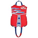 Four way stretch fabric with flexible sculpted foam. Bright colors make for better visibility on the water. Extremely fast drying so the kids can get right back in the water.