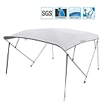 Kingbird Bimini Boat Top made of 600D/230GSM Marine Grade polyester canvas, PU coated, 100{4f68e189d3cf4e3ebdda5133e35265d735149066fae22641530f59a80cc6d0de} waterproof, breathable, Anti-UV and Anti-fade.Double stitched seams, neat sturdy and durable stitching. 1 INCH Stainless Aluminum with stainless steel hooks, buckles & saddles, protects from strong winds. The 2 rear support poles and 2 straps design, easy to set up,fold and space saving. Unlike others’, our Bimini top with boot stitched on the canvas, protects from blowing off. It protects you from the sun and rain, ideal for Runabout boats,V-Hull Boats,Jon Boat, Bass Boats,Inflatable Boats,Fiberglass Boats.