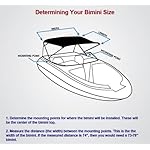Each pontoon bimini top comes in a variety of widths, for example, 91-96″. This represents the width at the two mounting points that this bimini will fit. To determine what width of bimini top you need, simply measure the width between your two mounting points. For example, if this width is 93″ then you would need a bimini top with a 91-96″ width.