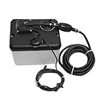 Manufacturer calls this a 1.8 gallon tank. This oil tank reservoir is constructed out of white and black polyethylene, and measures approximately 10″ L x 7 3/4″ W x 9″ H overall. Oil supply hose measures approximately 16′ 4″ L. Has (1) 2-pin female Deutsch connector cord.