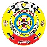 BIG BERTHA is a giant classic towable for 1-4 riders, featuring an air cushioned floor, non-slip foam handles with padded knuckle guards and a patented Quick Connect tow system. It’s fast and easy to use, simply slip your tow rope over the patented aluminum Quick Connect and you’re off and tubing. This popular towable comes fully loaded and built extra tough, with a double-stitched partial nylon cover and a heavy-duty K80 PVC bladder. Size: 1-4 rider, 76 in. (deflated) 67 in. (inflated)