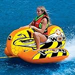 The advantage of the new WOW design is that the rider has a fixed, recessed cockpit with backrest that holds the rider in place as they glide across the water’s surface. Plus, extra wide pontoons on both sides enhance the balance and stability of this tow tube.